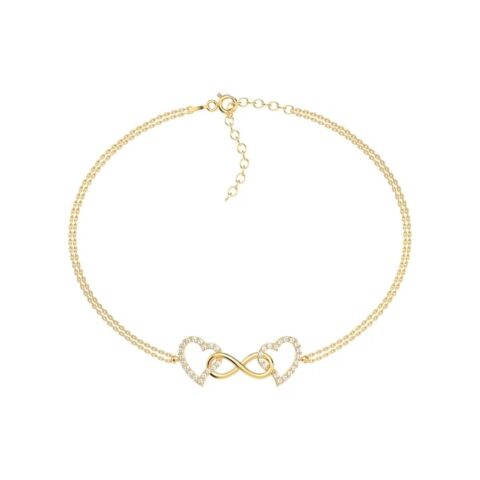 Çift Kalpli Sonsuzluk Altın Kaplama Gümüş Bileklik